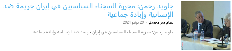في تقريره الأخير عن عمليات الإعدام الإجرامية في إيران في عامي 1981 و1982 ومذبحة عام 1988، نشر جاويد رحمن، مقرر الأمم المتحدة الخاص المعني بحقوق الإنسان، في 60 صفحة خلال الأيام الأخيرة من مهمته كمقرر خاص للأمم المتحدة.