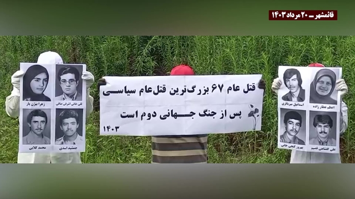 “سيستمر السعي للعدالة حتى سقوط نظام الملالي”، و”دماء شهداء عام 1988 تغلي إلى الأبد.”