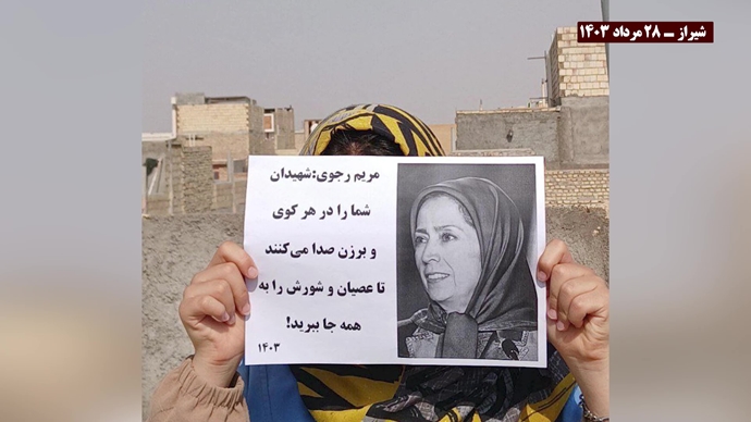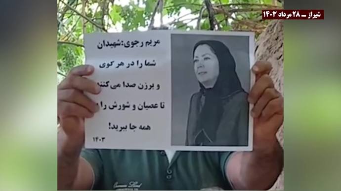 وفي طهران، تم توزيع صور الشهداء في مختلف أنحاء المدينة، بما في ذلك صورة مريم رجوي، الرئيسة المنتخبة من قبل المقاومة الإيرانية، مع رسالتها التي تحث على الثورة والانتفاض ضد الظلم.