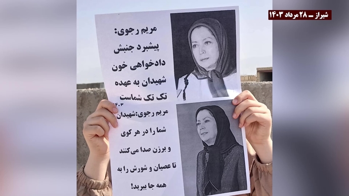 وفي كرج، رُفعت صور مريم رجوي وشعارات تدعو للمطالبة بالعدل لدماء الشهداء، وهو واجب يقع على عاتق كل منتمي للمقاومة.