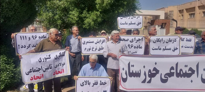 في الأهواز وشوش، خرج العمال والمتقاعدون من التأمين الاجتماعي إلى الشوارع لتحمل الحرارة الشديدة والتعبير عن استيائهم من الظروف المعيشية الصعبة وعدم دعم الحكومة لهم. شعار “من خوزستان إلى إيران، الموت للمديرين” يظهر بوضوح أن أهالي خوزستان أيضًا قد سئموا من السياسات الفاسدة والإدارة السيئة للنظام.