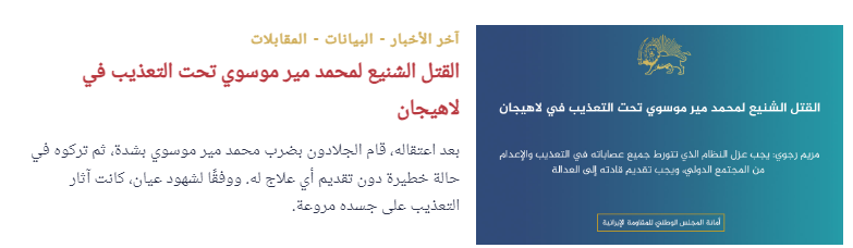 - في أعقاب كمين وإطلاق النار من قبل القوات القمعية التابعة للوحدة الخاصة في زاهدان على سيارة واشتباك مسلح مع ركاب السيارة، قتل شقيقان بلوشيان.