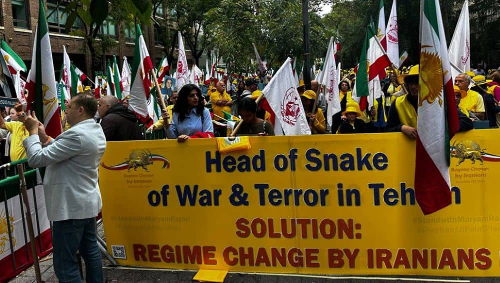 في 24 سبتمبر، نظم أنصار منظمة مجاهدي خلق الإيرانية وداعمو مقاومة الشعب الإيراني، بالإضافة إلى عدد من الشخصيات السياسية والحقوقية ومجموعات من جمعيات النساء والشباب والمتخصصين الإيرانيين، تظاهرة كبيرة أمام مقر الأمم المتحدة في نيويورك احتجاجًا على حضور رئيس النظام الكهنوتي مسعود پزشکیان إلى الأمم المتحدة.