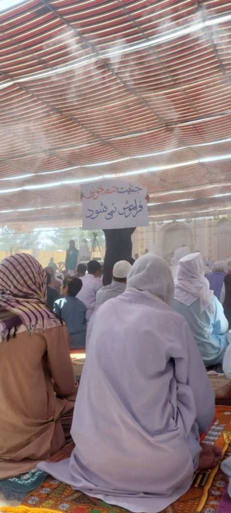 في ذكرى الجمعة الدامية تظاهر أهالي زاهدان بشعارات “نقسم بدماء رفاقنا نبقى صامدين حتى النهاية” و “يجب إطلاق سراح السجناء السياسيين” وطالبوا بانصاف دماء الشهداء.