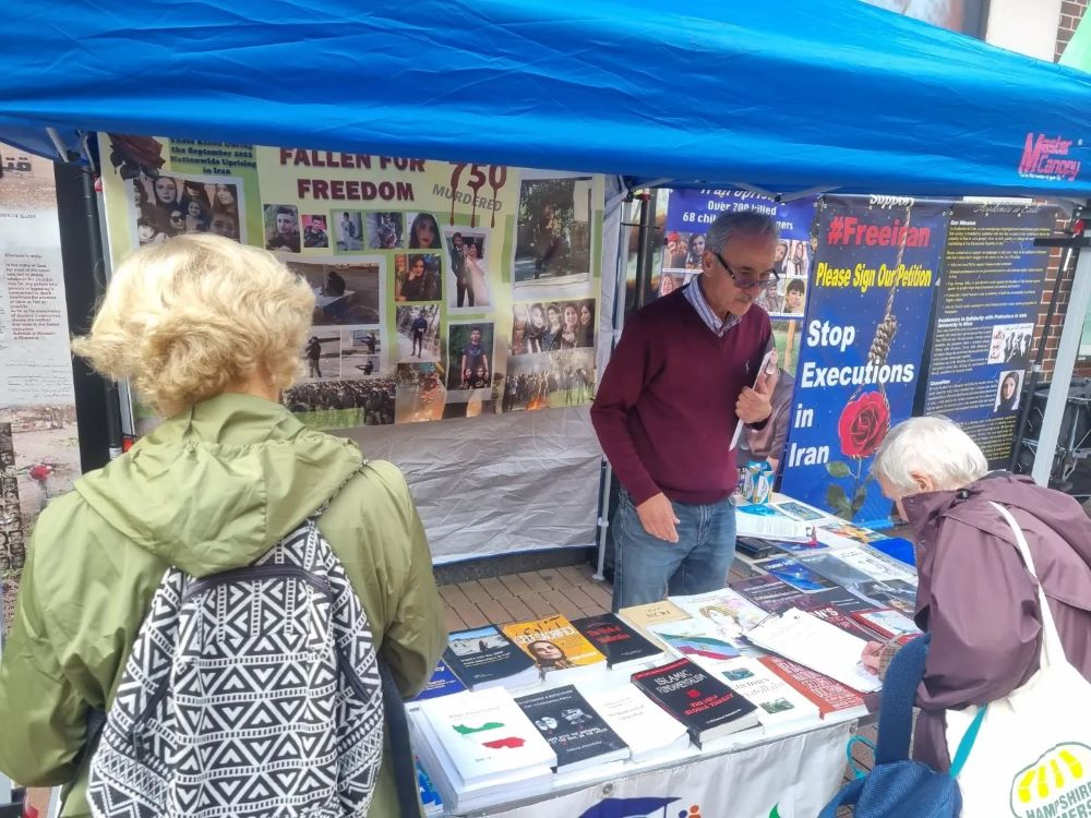 أعرب المواطنون الإنجليز، وخاصة الشباب، عن تضامنهم ودعمهم للانتفاضة الشعبية الإيرانية أثناء زيارتهم للمعرض.