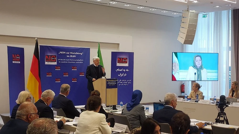 ودعا العديد من المتحدثين، بمن فيهم أعضاء في البوندستاغ الألماني ووزراء اتحاديون سابقون، إلى إنشاء محاكم خاصة لمحاسبة قادة النظام الإيراني على الانتهاكات المنهجية لحقوق الإنسان. صنف البروفيسور جاويد رحمن، في تقريره التاريخي بصفته المقرر الخاص للأمم المتحدة المنتهية ولايته المعني بحالة حقوق الإنسان في إيران، عمليات الإعدام الجماعي للسجناء السياسيين في عام 1988 على أنها “جرائم ضد الإنسانية” و”إبادة جماعية”.