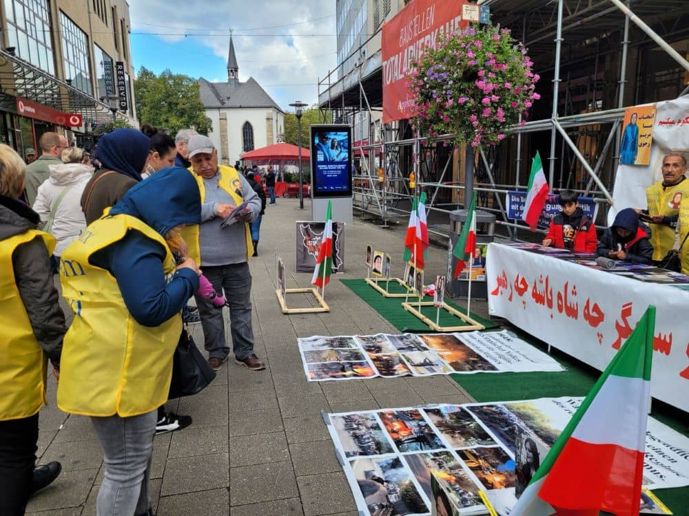 في 28 سبتمبر، نظم أنصار منظمة مجاهدي خلق الإيرانية والمقاومة الإيرانية معرضاً للصور وطاولة للكتب في مدينة إيسن، ألمانيا، تكريماً لشهداء الانتفاضة المستمرة في إيران. أقيم هذا الحدث، الذي جاء تضامناً مع الاحتجاجات الشعبية في إيران، في وسط المدينة إيسن، حيث عُرضت صور ولافتات تُجسد الشهداء الذين سقطوا خلال الانتفاضة، لا سيما أولئك الذين استشهدوا في الاحتجاجات الواسعة التي شهدتها إيران عام 2022.