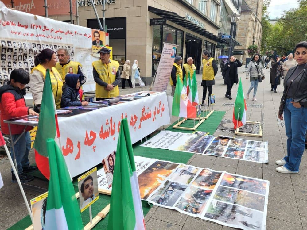وفي دوسلدورف، نُظمت فعاليات مماثلة، حيث رفعت لافتات تقول: «يجب استهداف المركز الرئيسي للإرهاب في طهران» و«الديمقراطية والحرية مع مريم رجوي.» عكست الشعارات التي رددها المتظاهرون الغضب والإصرار على إنهاء النظام الديني في إيران. وطالب المشاركون الاتحاد الأوروبي باتخاذ موقف حازم ضد انتهاكات حقوق الإنسان التي يرتكبها النظام الإيراني.