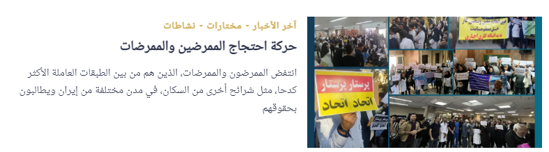- قال الأمين العام لدار التمريض التابعة للنظام الإيراني إن 50 ألف ممرض اضطروا إلى البقاء في المنازل وتغير وضع الممرضات بسبب صعوبات الوظيفة، قائلا “العمل البديل الأسهل للممرضات هو سيارات الأجرة عبر الإنترنت”.وأضاف أنه إذا لم يتم توفير البنية التحتية اللازمة للبقاء، فإن 11,000 ممرضة سيتركون وظائفهم قريبا.