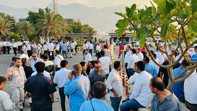 وفي مدينة بوشهر، تجمع عدة آلاف من العمال التعاقديين في صناعة الغاز أمام مبنى الإدارة الرئيسية لمجمع الغاز بالمدينة، احتجاجًا على ظروف عملهم. وترددت هتافات مثل «من الشعارات إلى الأفعال، وعود بلا تنفيذ» بين الحشود. هذا التجمع، الذي شارك فيه عمال من 12 مصفاة بالمنطقة، هو ذروة 16 أسبوعًا من الاحتجاجات المتفرقة التي شهدتها هذه المنشآت. وقد نظم العمال هذا التجمع المنسق للمطالبة بتحسين عاجل لظروف العمل وصرف المستحقات المتأخرة نتيجة لتجاهل الحكومة لمطالبهم.