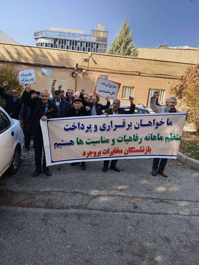 وفي مدن متعددة، أبرزها طهران، كرمانشاه، أصفهان، وأورمية، نظم متقاعدو قطاع الاتصالات تجمعات احتجاجية واسعة للتنديد بممارسات هیئة التنفيذي لأمر خميني الملعون وتعاون حرس النظام، المالكين لشركة الاتصالات. وشدد المحتجون على أن هذه المؤسسات، التي تعمل تحت إشراف مباشر من الولي الفقیة، أضرت بحقوقهم التقاعدية واستنزفت صناديق المعاشات لصالح مصالح النظام.