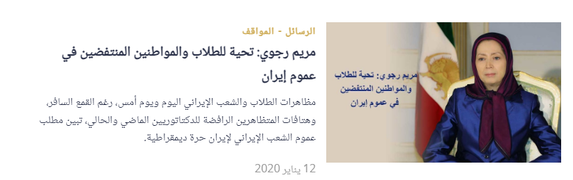 “في 9 يوليو 1999، قام الطلاب في طهران بمظاهرات ضد الحكومة احتجاجًا على القمع السائد، وتحولت هذه المظاهرات إلى انتفاضة شعبية كبيرة. في ذلك اليوم، أي 9 يوليو، الذي كان بمثابة7ديسمبر آخر، قامت الوحدات القمعية بضرب 1300 طالب. عدد القتلى في تلك الهجمات كان على الأقل عشرة أشخاص. هاجم النظام الإجرامي مظاهرات الطلاب بوحشية، مما أدى إلى استشهاد عدد من الطلاب بأبشع الطرق وإصابة العديد واعتقال الكثيرين.