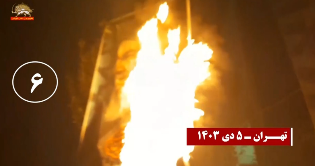 وفي مشهد، تم أيضًا إحراق بوسترات تحمل صور خامنئي وشخصيات أخرى مرتبطة بالنظام، في تعبير واضح عن الرفض الشعبي للقيادة الحالية وسياساتها القمعية.