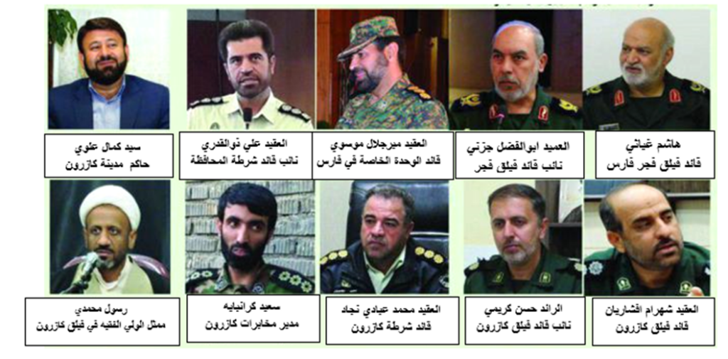 وفقًا للتقارير الواردة من داخل النظام، ومع تصاعد انتفاضة الشعب في كازرون يوم 16 مايو 2018، تولّى العميد أبو الفضل جزني، نائب قائد فيلق حرس فجر في فارس، بمعية مساعد شؤون الاستخبارات في الحرس بالمحافظة، إدارة الوضع الأمني في كازرون مساء الأربعاء عبر مشاركته في اجتماع مجلس الأمن في المدينة.