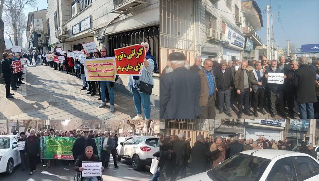 في ٢ فبراير، شهدت عدة مدن إيرانية احتجاجات واسعة شارك فيها المتقاعدون، والمنهوبون من قبل المؤسسات المالية، والعمال. في طهران، الأهواز، أصفهان، کرمان، مازندران، جيلان، وشوش، خرج المواطنون إلى الشوارع للتعبير عن غضبهم تجاه الأزمة الاقتصادية المتفاقمة. ومن بين الهتافات التي رددوها، برز شعار: “کفى إشعال الحروب، موائدنا فارغة!”، الذي صدح بقوة في احتجاجات المتقاعدين في الأهواز، ليصبح الرسالة الأبرز لهذا اليوم. يدرك الإيرانيون جيدًا أن فقرهم ليس بسبب العقوبات الخارجية، بل نتيجة للسياسات التدميرية للنظام الذي يفضل تمويل الإرهاب والمشاريع النووية على حساب قوت شعبه.
