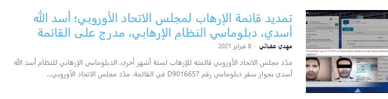 وفي سياق سياسة تبادل الرهائن التي تنتهجها طهران، عاد أسد الله أسدي، الدبلوماسي الإيراني الذي كان يقضي عقوبة بالسجن في بلجيكا بتهمة التخطيط لتفجير إرهابي خلال تجمع لمنظمة مجاهدي خلق، إلى إيران بعد صفقة تبادل أسرى.