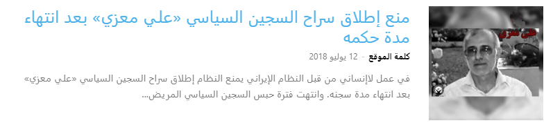 في يوم السبت، 15 فبراير 2025، تم نقل السجين السياسي علي معزي البالغ من العمر 72 عامًا بشكل مفاجئ ودون أي إشعار مسبق من الجناح 4 في سجن إيفين إلى سجن قزلحصار. يثير هذا النقل المفاجئ مخاوف جدية بشأن وضعه الصحي، خاصة مع تقدمه في السن.