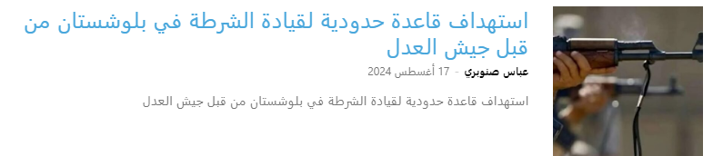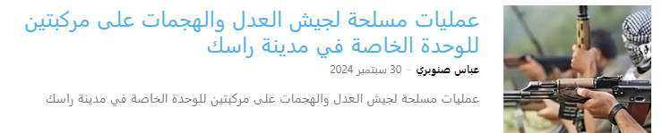 أعلنت منظمة جيش العدل يوم السبت 1 مارس أنها استهدفت وقتلت اثنين من ضباط الأمن التابعين لكتيبة الأمنية لقوات الحرس في مدينة سراوان جنوب شرق إيران. وكان هذان الضابطان من القوات النخبوية في هذه الوحدة، وتم إرسالهما كتعزيزات إلى المقر العملياتي ” الإمام سجاد“ في المنطقة.
