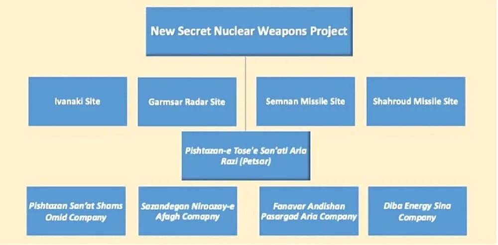 “كل هذه المواقع تعمل تحت غطاء شركات وهمية كمنشآت كيميائية للنفط والبتروكيماويات”، بحسب الكاتبة، لكنها عمليًا تخضع لمنظمة الابتكار والبحث الدفاعي (SPND) التابعة لوزارة الدفاع الإيرانية وتدار من قبل قوات الحرس.