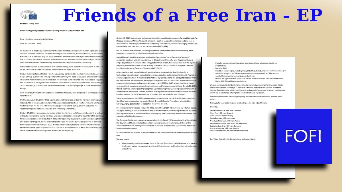في بيان عاجل ومؤثر، دعا عدد من أعضاء البرلمان الأوروبي المنتمين للمجموعة أصدقاء إيران الحرة إلى تحرك دولي فوري لوقف موجة الإعدامات السياسية المتصاعدة في إيران. البيان، الذي صدر في 28 يوليو 2025، يدين بشدة إعدام السجينين السياسيين بهروز إحساني ومهدي حسني، ويحذر من أن هذا التصعيد يعيد إلى الأذهان مجزرة عام 1988. وطالب النواب بإجراء تحقيق دولي، وإدراج حرس النظام الإيراني على القائمة السوداء، وربط أي مفاوضات مع طهران باحترام حقوق الإنسان الأساسية.