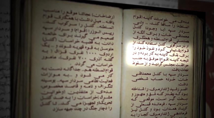 من ناحية أخرى، مع تصاعد الصراع على السلطة في طهران بين القادة الفاسدين في العاصمة، كان أول ما وضعه قوام، الذي خرج من السجن ليصبح رئيسًا للوزراء، على جدول أعماله هو القضاء على العقيد في خراسان!