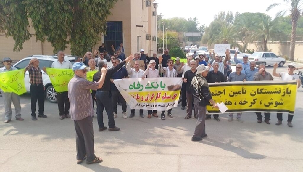 شكّل المتقاعدون القوة الأبرز في احتجاجات اليوم، حيث خرجوا في تجمعات متزامنة في عدة مدن كبرى. في طهران وكرج، احتشد المتقاعدون أمام منظمة الضمان الاجتماعي وهم يهتفون “المعيشة والكرامة حقنا المؤكد” و “العلاج المجاني حقنا المؤكد”. وفي رشت، طالب المحتجون بتحرير أموال الضمان الاجتماعي من سيطرة الحكومة، بينما رفع متقاعدو شوش وكرخة وهفت تبه صوتهم للمطالبة بحقوقهم المنهوبة.