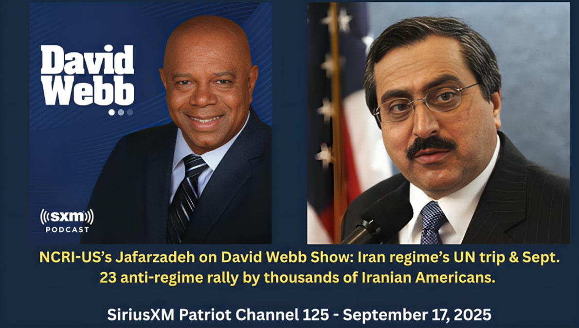 في مقابلة مع برنامج “ديفيد ويب شو” على قناة “SiriusXM Patriot” يوم الأربعاء 17 سبتمبر 2025، تحدث علي رضا جعفر زاده، نائب مدير مكتب المجلس الوطني للمقاومة الإيرانية في الولايات المتحدة، عن المظاهرة الحاشدة القادمة في نيويورك ضد حضور ممثل النظام الإيراني في الأمم المتحدة. وأكد جعفر زاده أن هذا التجمع سيوصل رسالة واضحة مفادها أن الشعب الإيراني يرفض النظام الحالي ويدعم بديلاً ديمقراطياً، وأن الوقت قد حان لمحاسبة النظام على جرائمه.