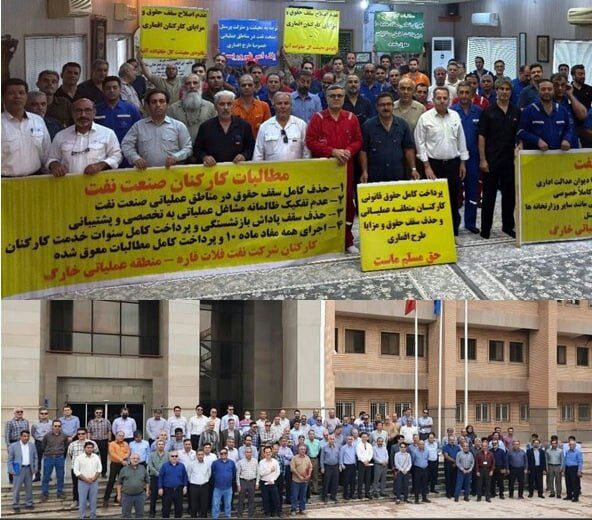 لم تقتصر مآسي اليوم على المتقاعدين. ففي شاهرود، احتج عمال مصنع صهر الصلب الذي وصل إلى حافة الإغلاق الكامل، مهددًا بمصير 300 عامل لم يتسلموا رواتبهم منذ أربعة أشهر. وفي آغاجاري، لجأ عمال شركة النفط والغاز إلى خطوة رمزية بالغة التأثير، حيث فرشوا موائد طعام فارغة ليعكسوا فقرهم في قلب واحدة من أغنى مناطق البلاد النفطية. أما في كاشان، فقد صرخ المتقدمون لمشروع الإسكان الوطني بمعاناتهم الممتدة لـ 40 عامًا، حيث دفعوا أموالهم ولم يتسلموا منازلهم قط، في أبلغ مثال على فشل الدولة وعقود من الوعود الكاذبة.