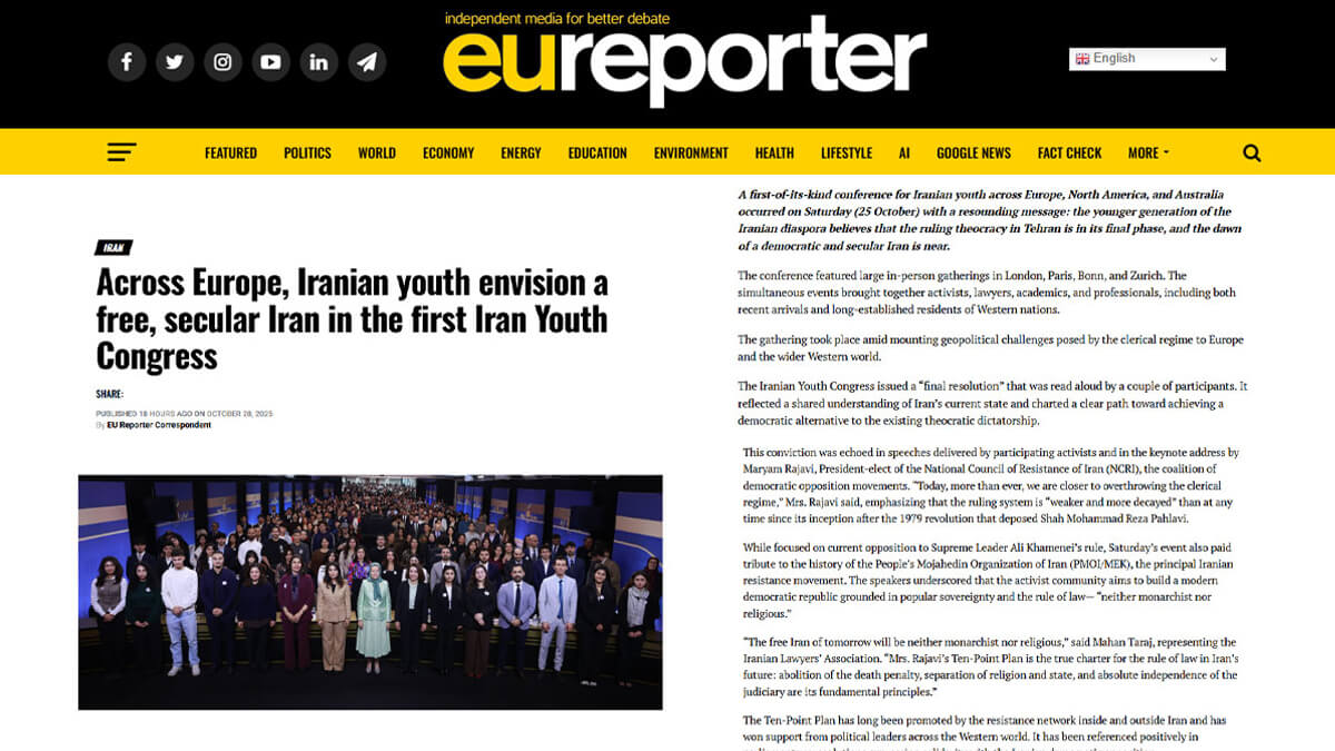 في مؤتمر هو الأول من نوعه للشباب الإيراني في أوروبا وأمريكا الشمالية وأستراليا، والذي عُقد في 25 أكتوبر، بعث الجيل الشاب من الشتات الإيراني برسالة مدوية مفادها أن نظام الحكم الديني في طهران يعيش مرحلته الأخيرة، وأن فجر إيران ديمقراطية وعلمانية بات قريبًا. هذا ما أبرزه تقرير لموقع “eureporter” الإخباري، الذي غطى الحدث الذي جمع بين النشطاء والمحامين والأكاديميين في تجمعات كبيرة متزامنة في لندن وباريس وبون وزيورخ.