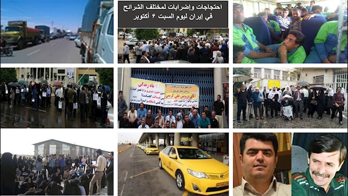 أوردت التقارير الواردة لمنظمة مجاهدي خلق الإيرانية مواصلة احتجاجات وإضرابات لمختلف الشرائح في إيرن ليوم السبت 6 أكتوبر.