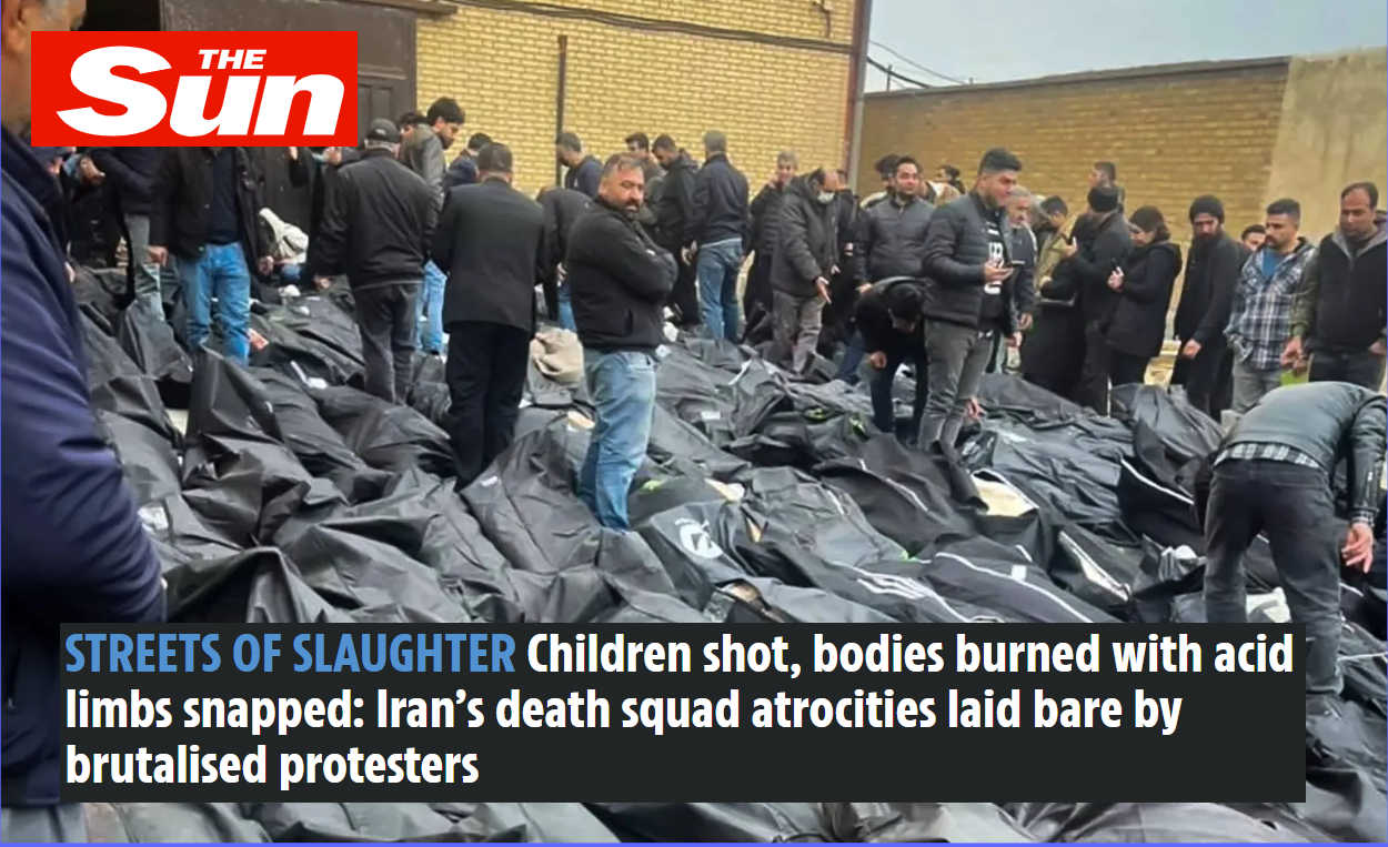 كشفت صحيفة “ذا صن” البريطانية، في تقرير مروع، عن فظائع يندى لها الجبين ترتكبها “فرق الموت” التابعة لنظام الملالي في إيران. وأكدت الصحيفة أن العالم لم يدرك بعد “عمق الكارثة” الناجمة عن القمع الدموي، حيث نقلت شهادات مروعة لشهود عيان كشفوا كيف يقوم عملاء الولي الفقيه بإطلاق النار على الأطفال، وحرق الجثث بالأسيد، وتهشيم أطراف المتظاهرين.