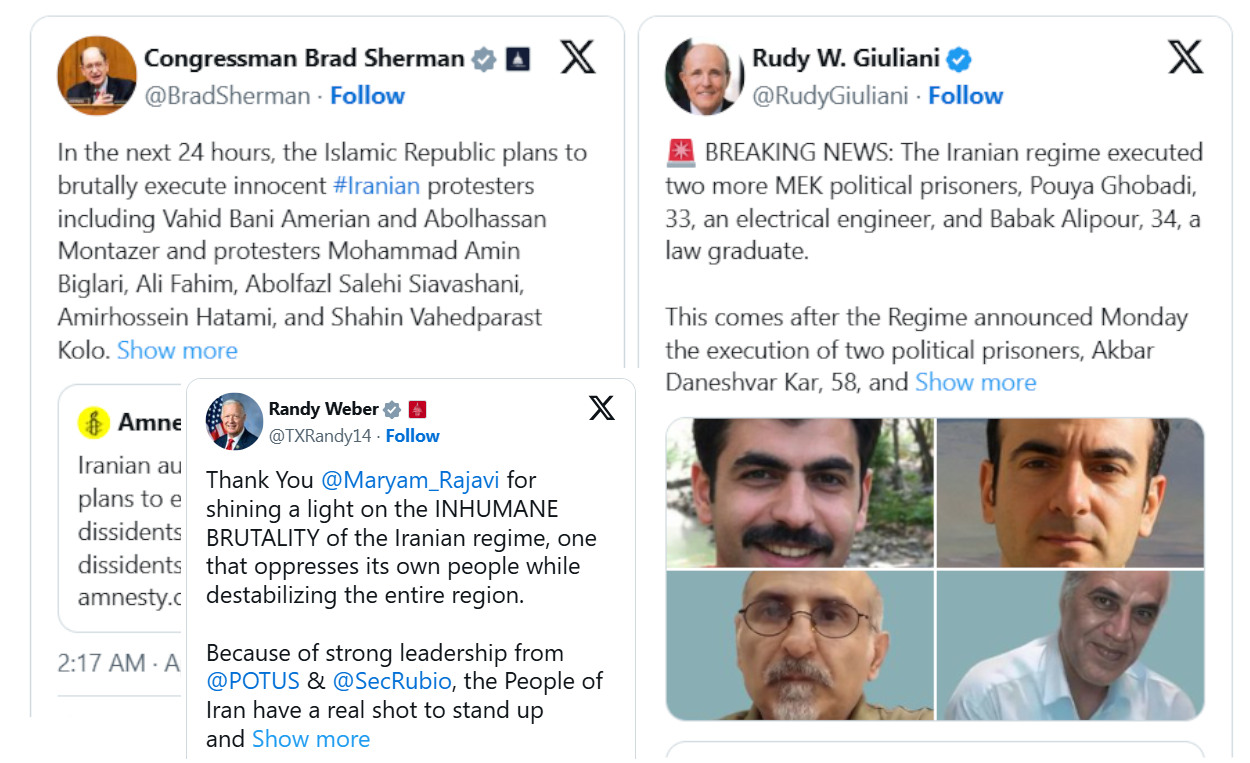 إدانات دولية واسعة لإعدام النظام الإيراني أربعة من مجاهدي خلق ودعوات لدعم الشعب الإيراني