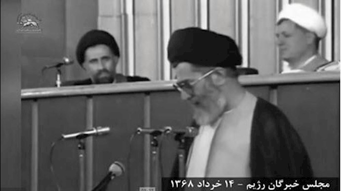 وبذلک فقد أخرج رفسنجاني و خبراء الملالي وغيرهم من قادة النظام خلفاء خميني، خامنئي من المدبغ بين ليلة وضحاها وأجلسوه في منصب الولي الفقيه ومرشدا للاستبداد الديني وذلک لخوفهم حسب ما قالوا وکتبوا آنذاک من هجوم جيش التحرير الوطني وانتفاضة الشعب واسقاط النظام.
