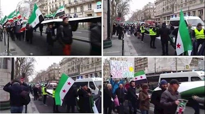 تظاهرات في باريس ضد جرائم نظام الأسد اللاإنسانية بتواطؤ خامنئي في سوريا + فيديو