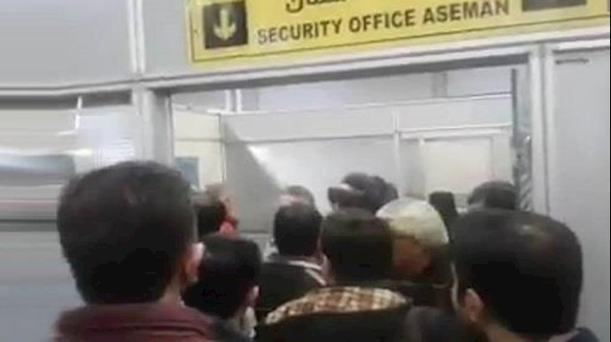 احتج مواطنون غاضبون علی التأخير لمدة 6 ساعات يوم الخميس22فبراير2018 لرحلة شرکة «آسمان» للخطوط الجوية في مطار«مهرآباد».