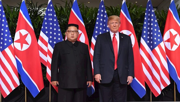وكان ترمب وكيم اجتماعا في لقاء وجهاً لوجه لمدة 48 دقيقة قبل الاجتماع الموسع، والتقى الرجلان في سنغافورة بحضور المترجمين الفوريين فقط، بعدها انتقلا الى اجتماع ثان موسع بحضور مساعديهما، وكان من بين الحضور في الموفد الأميركي وزير الخارجية مايك بومبيو، وجون بولتون.