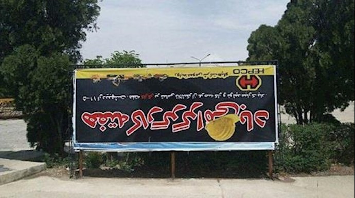 يوم السبت28 أبريل 2018 قلب عمال معمل «هبکو» لافتة نظام الملالي بشأن اليوم العالمي للعمال لاظهار احتجاجهم علی الظروف الإقتصادية المتردية.